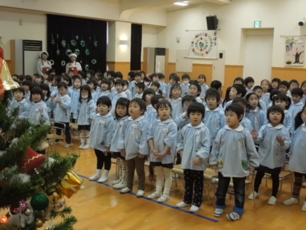 今日は、幼稚園で一足早いクリスマス会を行いました。