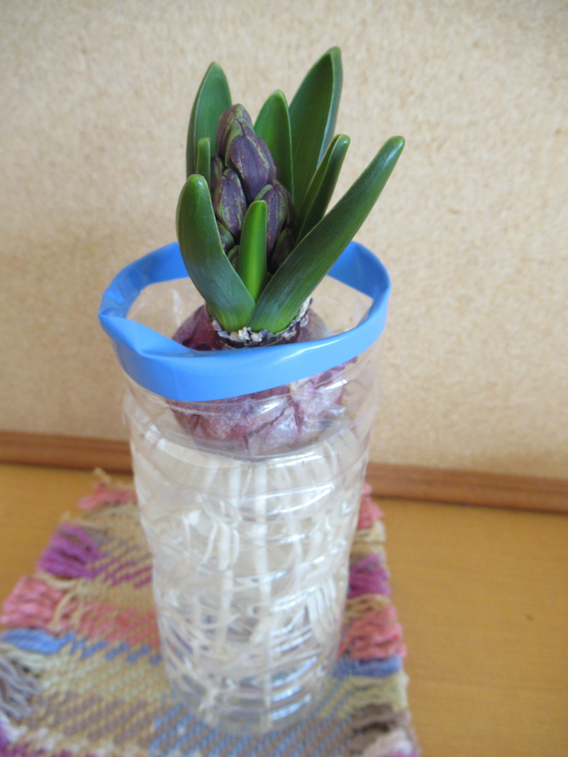 きれいに花を咲かせたヒヤシンスを見て、開花を待っているクラスのこどもたちは「うちのクラスにも咲いたら見に来てね!」と友達や先生に話をしていました。これからが楽しみです。