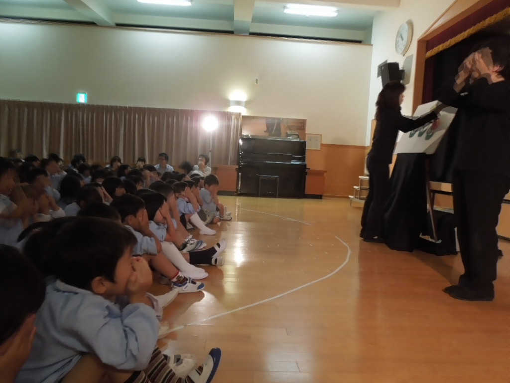 父母の会主催の人形劇を皆で鑑賞しました。今日来てくださったのは、人形劇グループ「きかんしゃ」さんです。