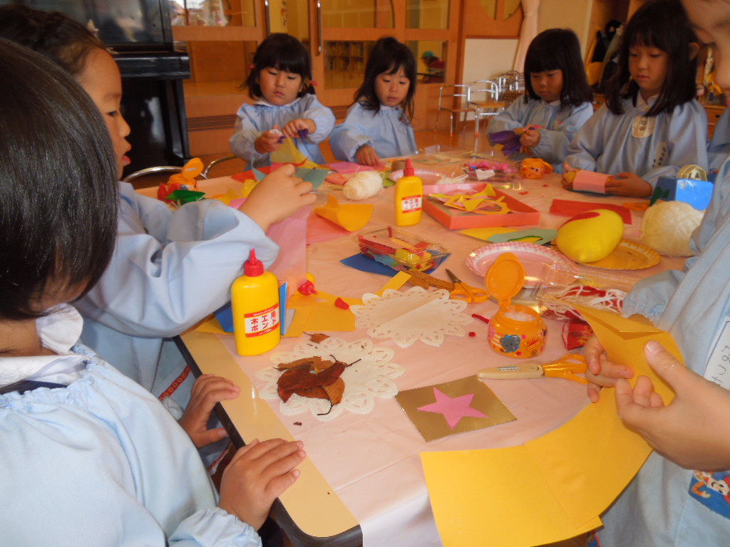 一段と寒さが増してきている今日この頃、園庭の木々も冬支度を始めました。赤や黄色に色づいた木の葉が風に舞い、きれいな落ち葉のじゅうたんに、こどもたちも大喜びで遊んでいます![]()
