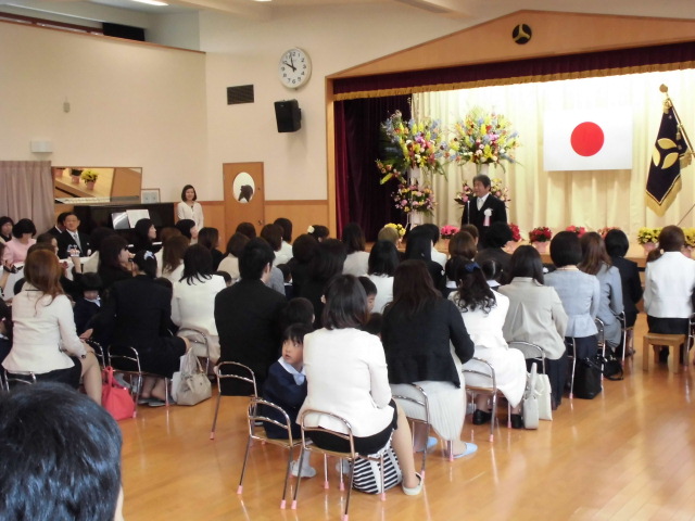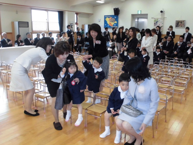 桜の花が咲き始め春風が心地よい中、入園式を行いました。幼稚園の制服を着て、元気いっぱいに登園したこどもたちの顔はキラキラと輝いていました少し緊張している様子も見られました。「明日から何して遊ぼうかな」「また明日ね」との声も聞かれ、期待が高まっているようでした。