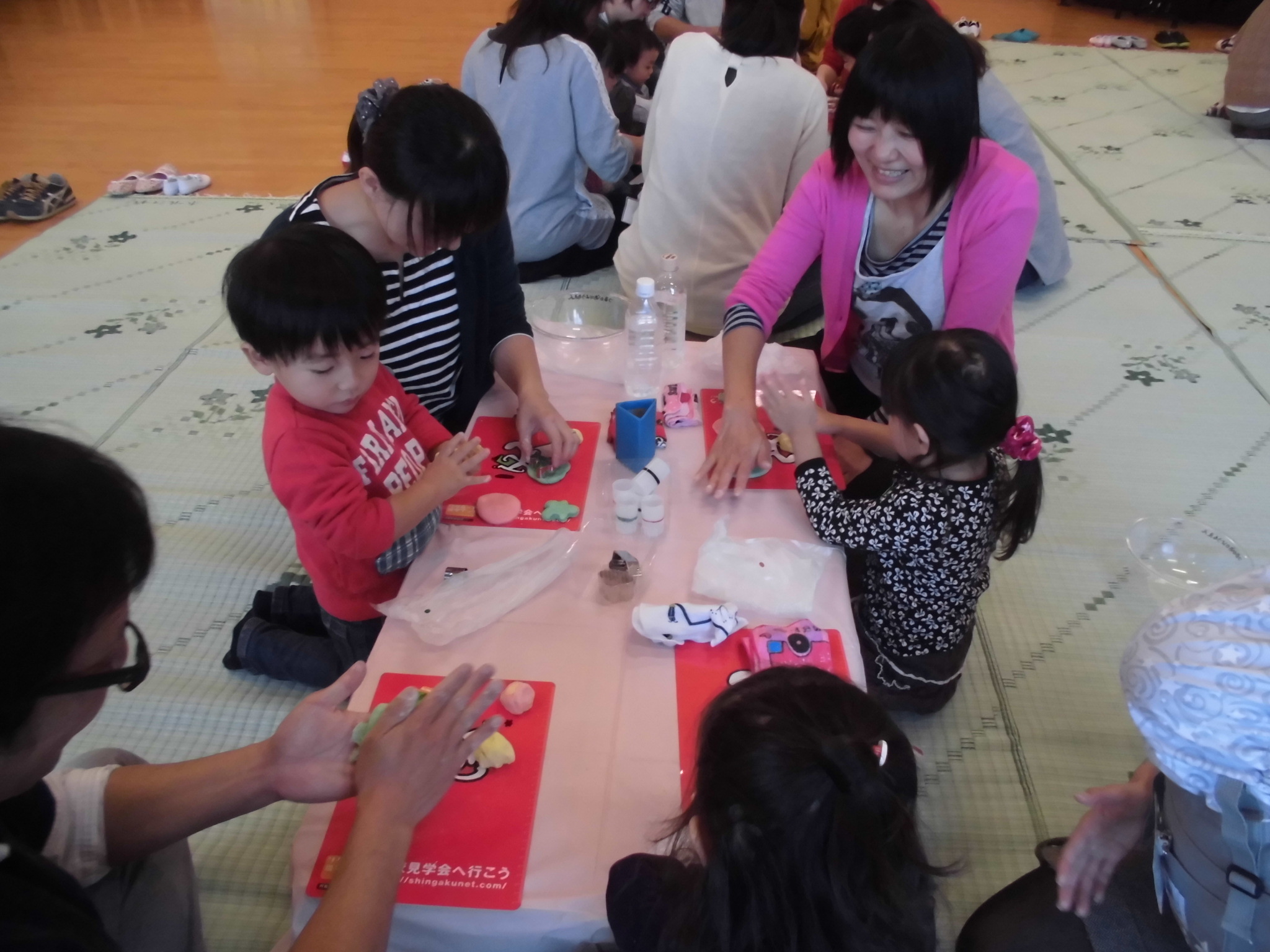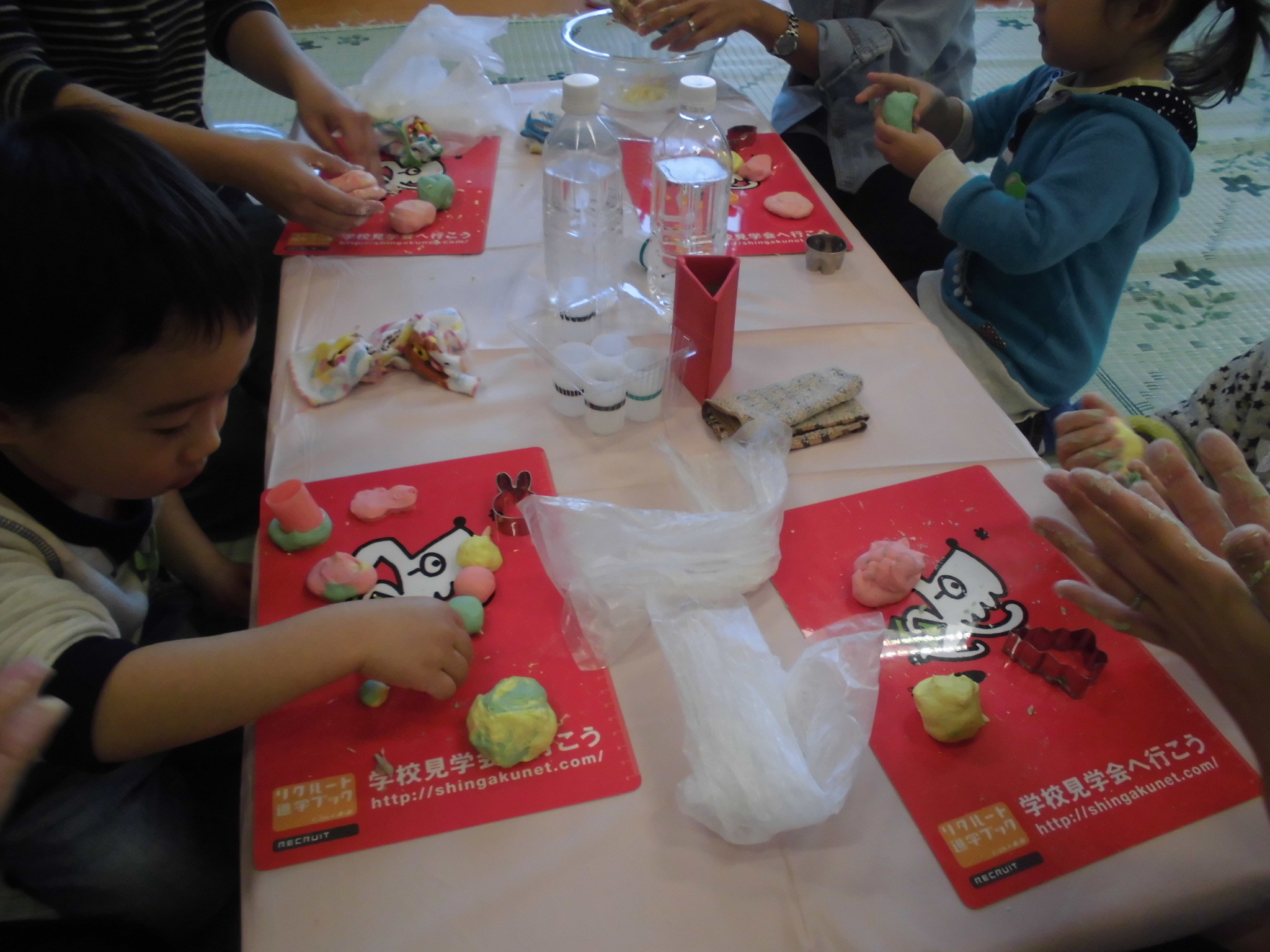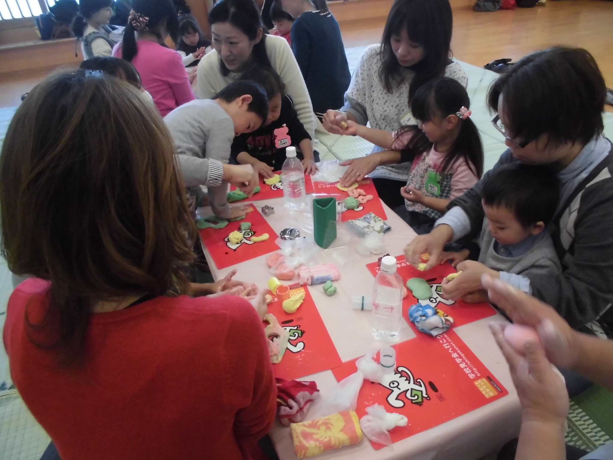 今日はハミングサークルがありました。今回の活動では、親子で小麦粉粘土を作って遊びました。