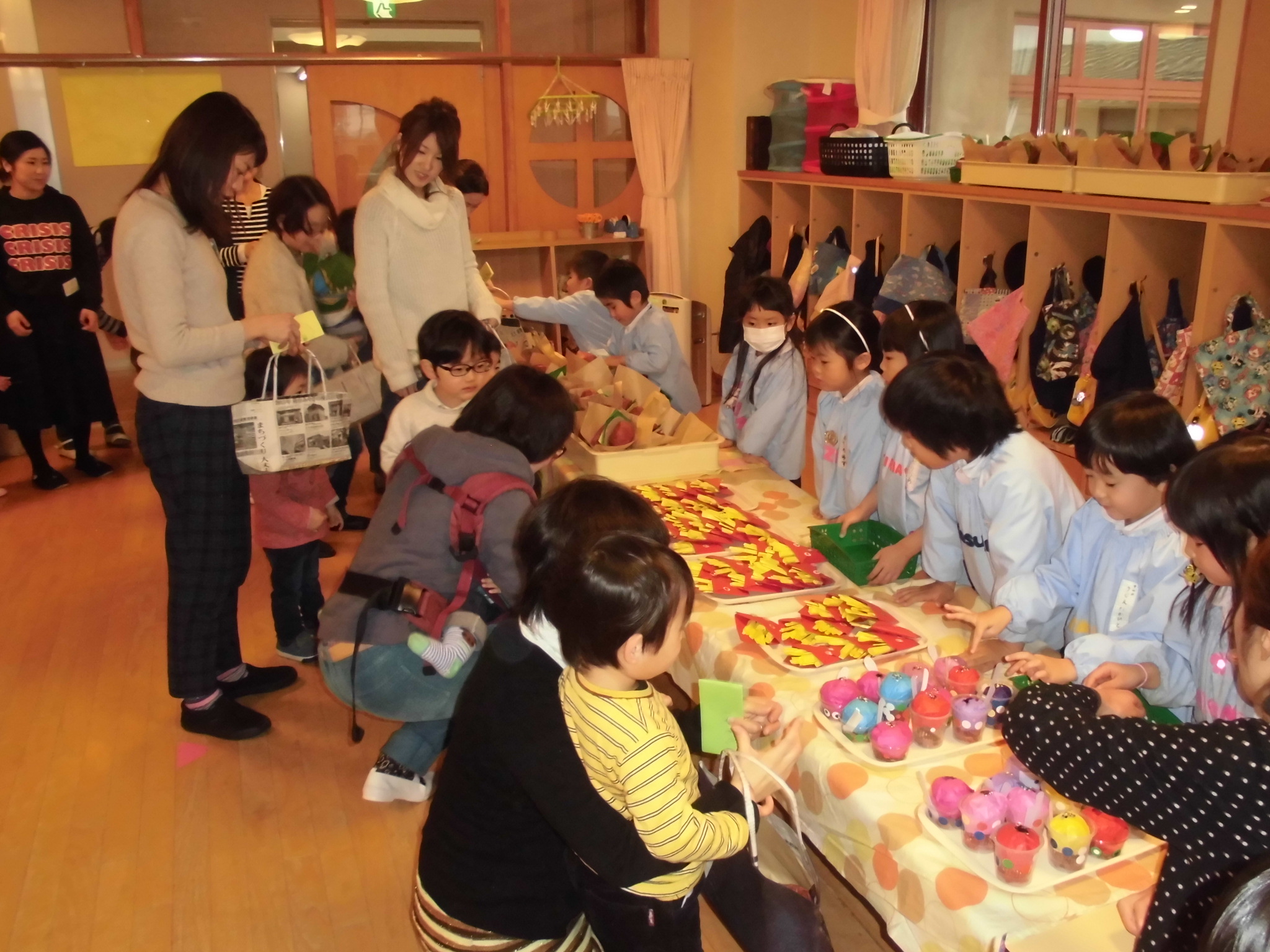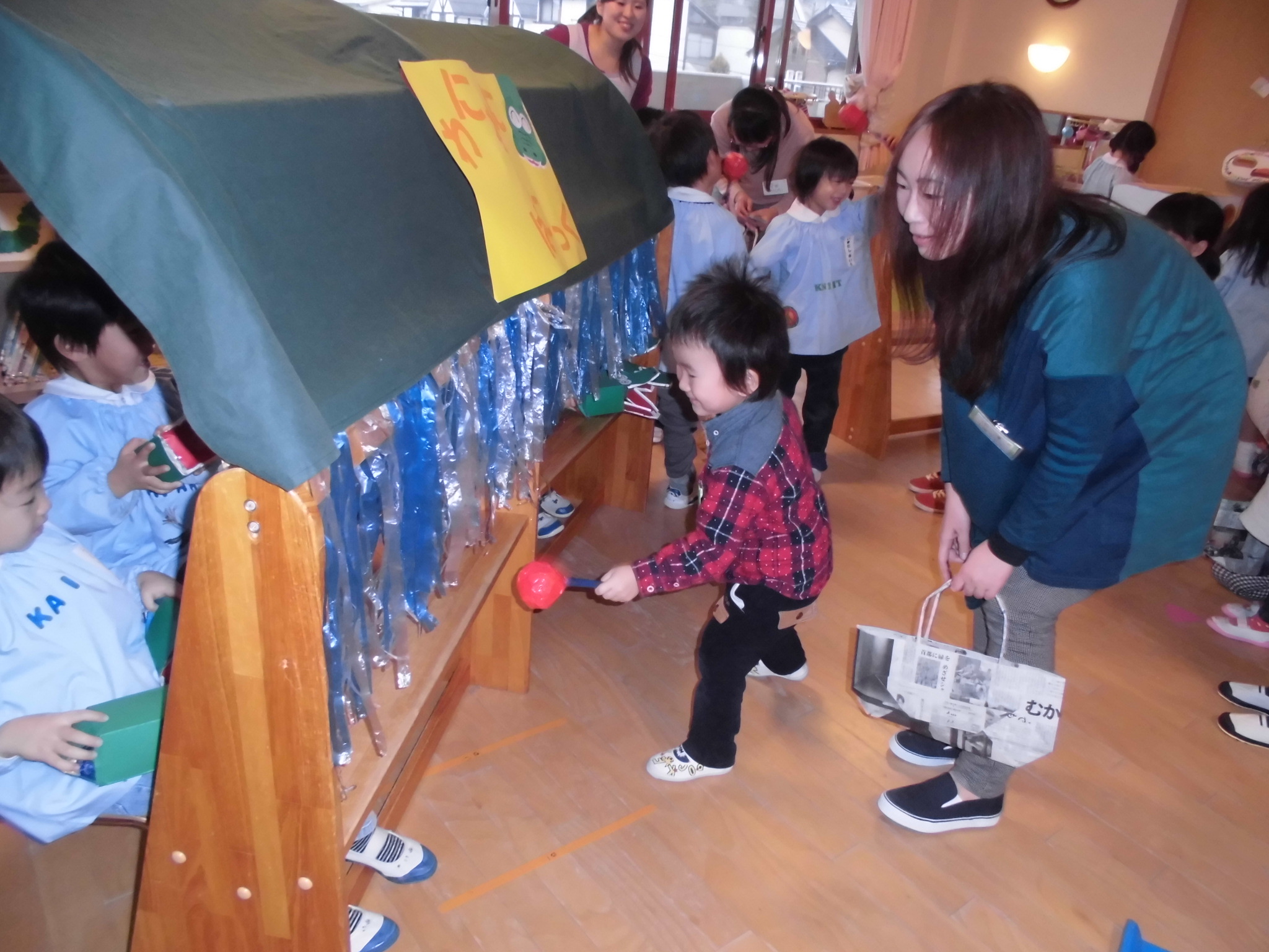 今日のハミングサークルでは、幼稚園の年中組のお友達と一緒にお店屋さんごっこをしました![]()