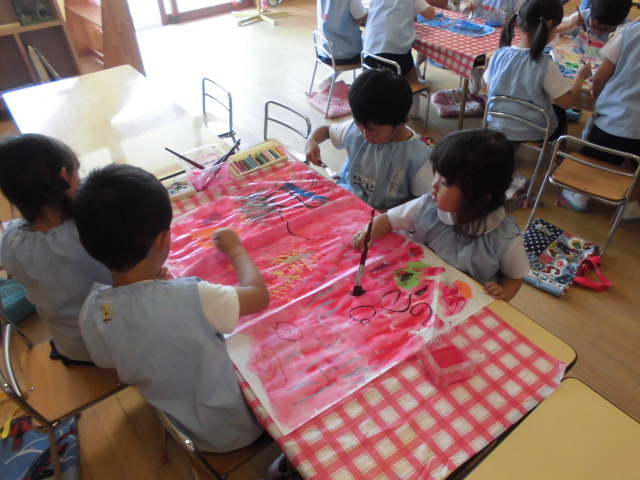 7月7日の七夕に向け、異年齢のたてわりグループで七夕飾りを作りました。