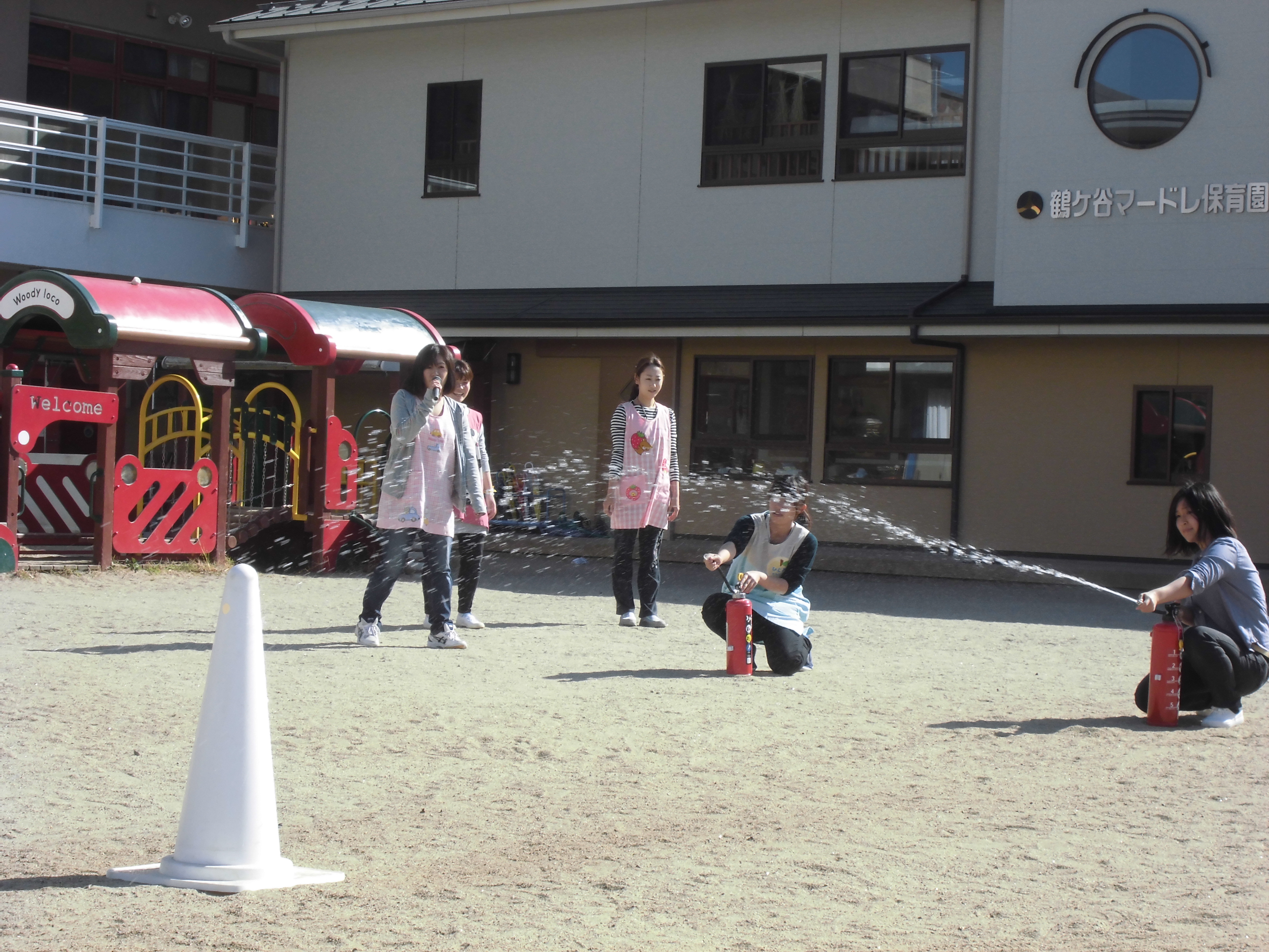 今日は鶴ヶ谷幼稚園に併設されているマードレ保育園と一緒に、火災避難訓練を行いました。