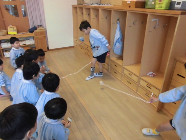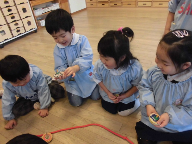 - 年長さんの独楽回し披露!