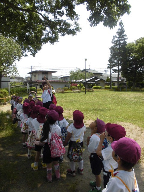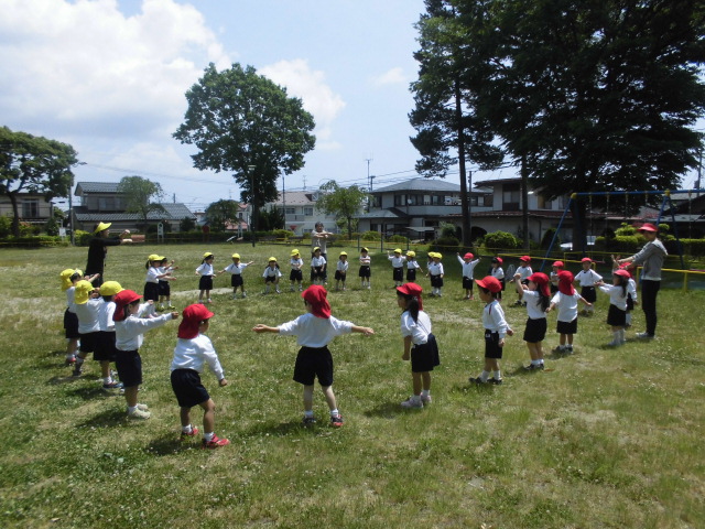 今日はわくわく遠足(年少組)、にこにこ遠足(年中組)で鶴ヶ谷四丁目公園に行ってきました。年少組は、たけのこ体操をしたり、かけっこをしたりしました。帰る時には「楽しかったねー!」「また公園で体操しようね!」と満足した様子でした。