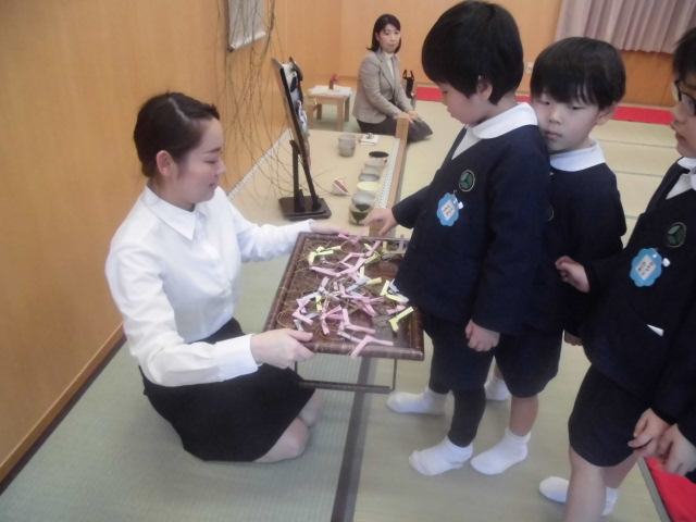 次回は、自分でお茶を点てる年長最後の茶道の時間です。心に残る時間となるよう、期待を高めていきます。