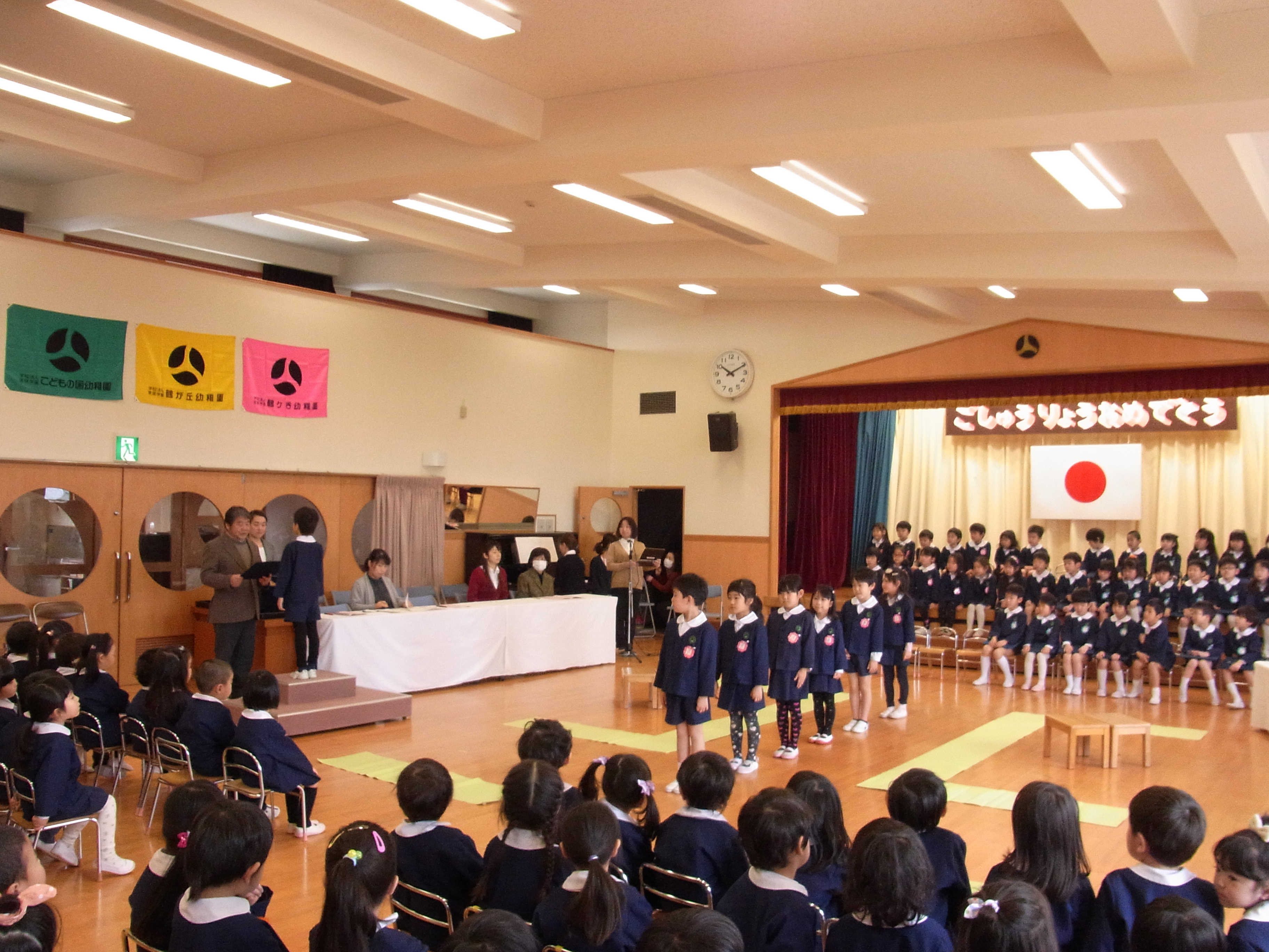 本日、鶴ヶ谷幼稚園では修了式の総練習を行いました。年中・少組は真剣に取り組む年長組の様子を憧れの眼差しで見つめていました。年長組は幼稚園の思い出を振り返りながら一人ひとりが自信をもって参加していたようです。園長先生から堂々と修了証書を受け取る姿や心をひとつにした全員でのうたやことばに、教師の目は早くも潤んでしまいました。年長組として過ごす残り少ない日々を友達とたくさん遊び楽しく過ごしていきます。