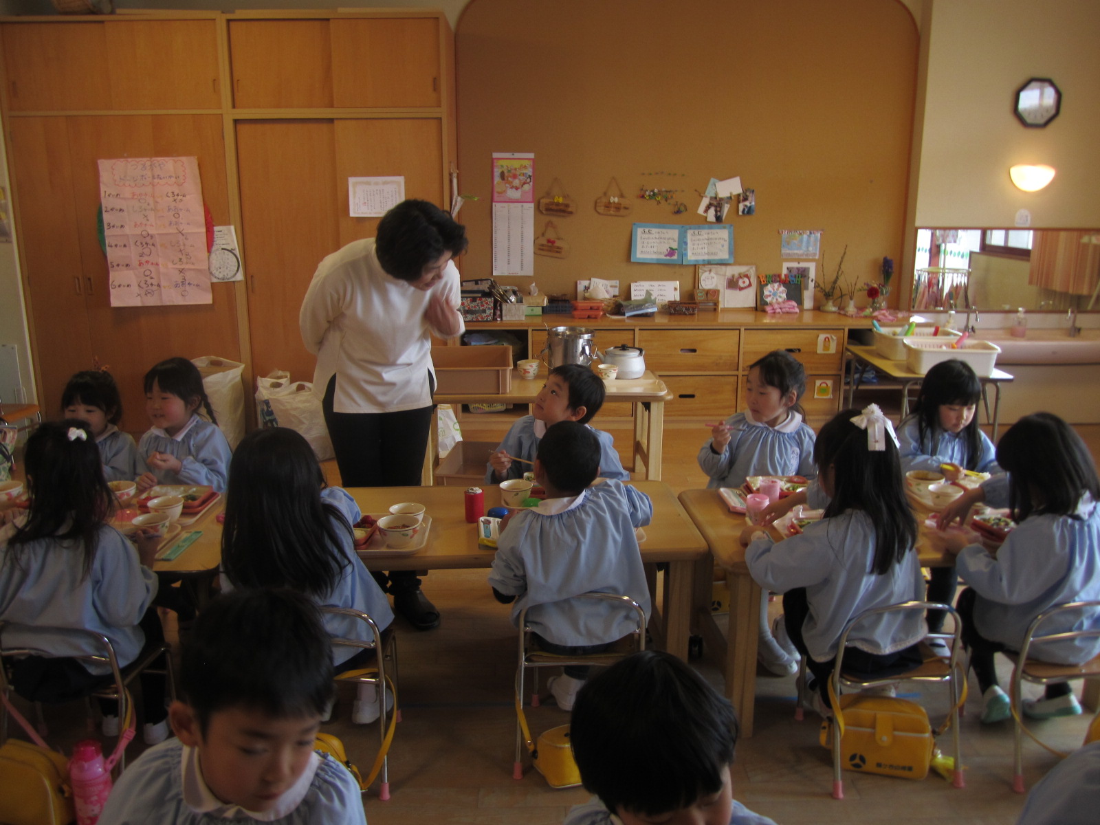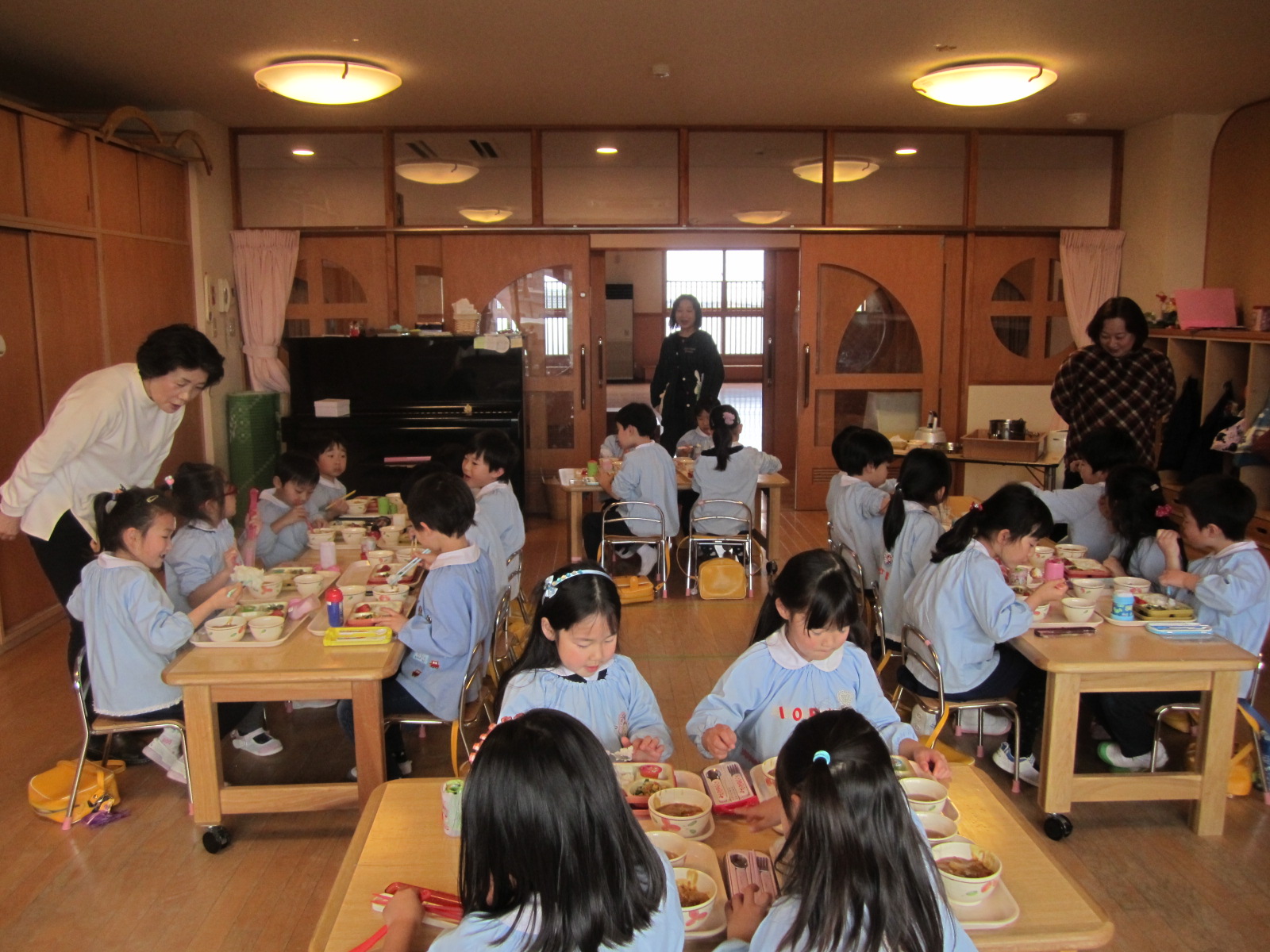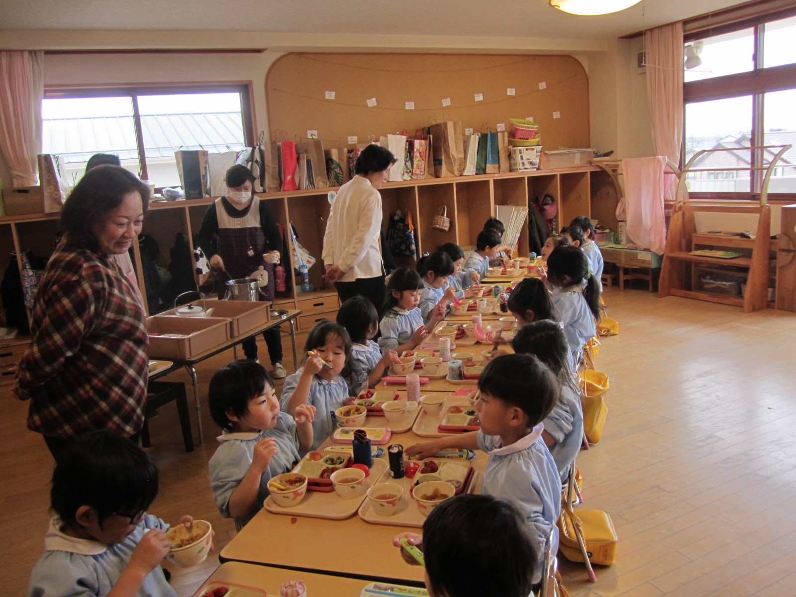 今日は今年度最後の給食の日でした。給食調理の方々に来ていただき、「いつもおいしい給食を作ってくれて、ありがとう!」「今日のカレーもおいしいよ」と感謝の気持ちを伝え、みんなが大好きなカレーをお腹いっぱい食べました。今後も、昼食の時間を通して、友達と一緒に食べる楽しさや、残さず食べる喜びを味わえるようにしていきます。