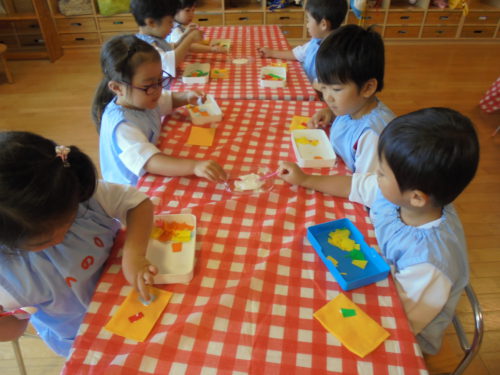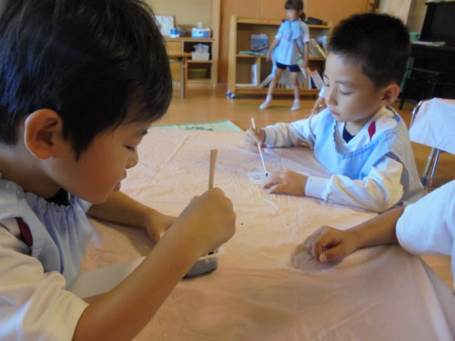 鶴ケ谷幼稚園のこどもたちは敬老の日に向けて製作を行っています。おじいちゃんおばあちゃんの喜ぶ顔を考えながら心を込めて製作を行ないました!完成した作品は封筒に入れ、敬老の日に向けて郵送させていただきます!どんな作品かは届いてからのお楽しみです♪
