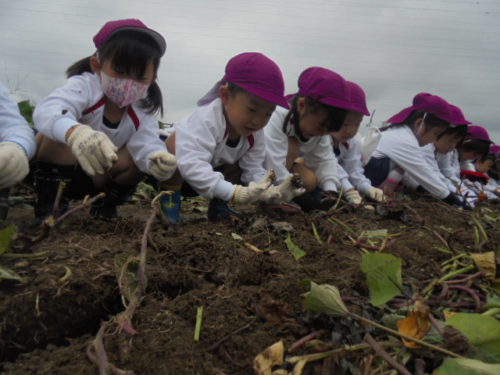 本日、鶴ケ谷幼稚園ではさつまいも掘りに行ってきました。