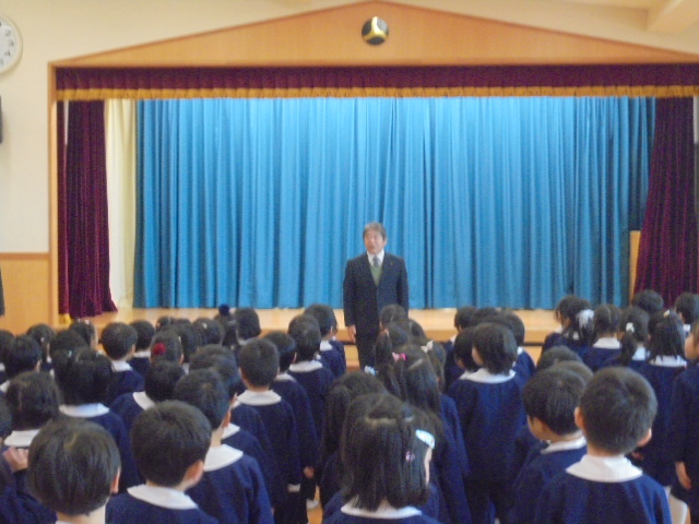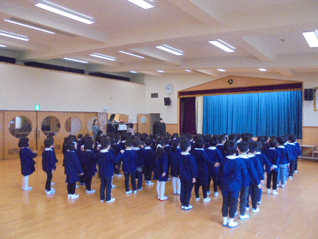 鶴ヶ谷幼稚園では今日から3学期が始まりました。久々の登園でしたが、皆元気に登園し先生や友達との再会を喜んでいました。始業式では園歌を歌い、元気な歌声を聞くことができました。また、各学年の代表の友達が冬休み楽しかったことを発表しました。かくれんぼや大縄跳びをしたこと、遊園地に遊びに行ったことが楽しかったと話していました。一年の中で一番短い3学期ですが、皆で楽しく過ごし思い出をたくさん作っていきます。