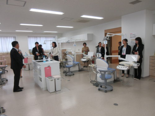 理事長先生と歓談をした後に、仙台保健福祉専門学校の歯科衛生科やこども科、介護福祉科などの施設や授業の様子を見学し、学校内にある「Cafeteria The Rose」にて昼食をいただきながら、お互いの園の様子や父母の会の活動について、情報交換等をしていただきました。