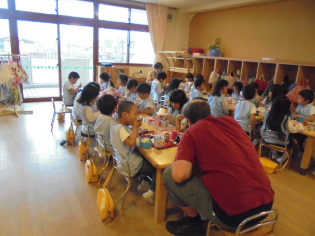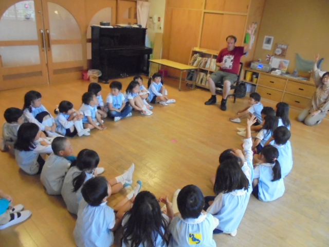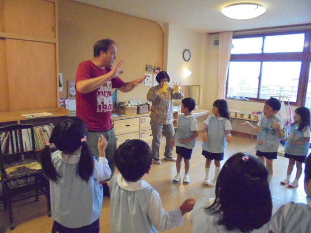 鶴ヶ谷幼稚園では異文化体験活動を行いました。ダイナミックな振りが楽しいThe Finger Familyをみんなで歌ったり、マイク先生の問いかけに積極的に応じたりして、異文化の表現を楽しみました。活動の後に一緒にランチを食べたり、絵本を読んでもらったりする時間もとても楽しいひとときとなったようです。