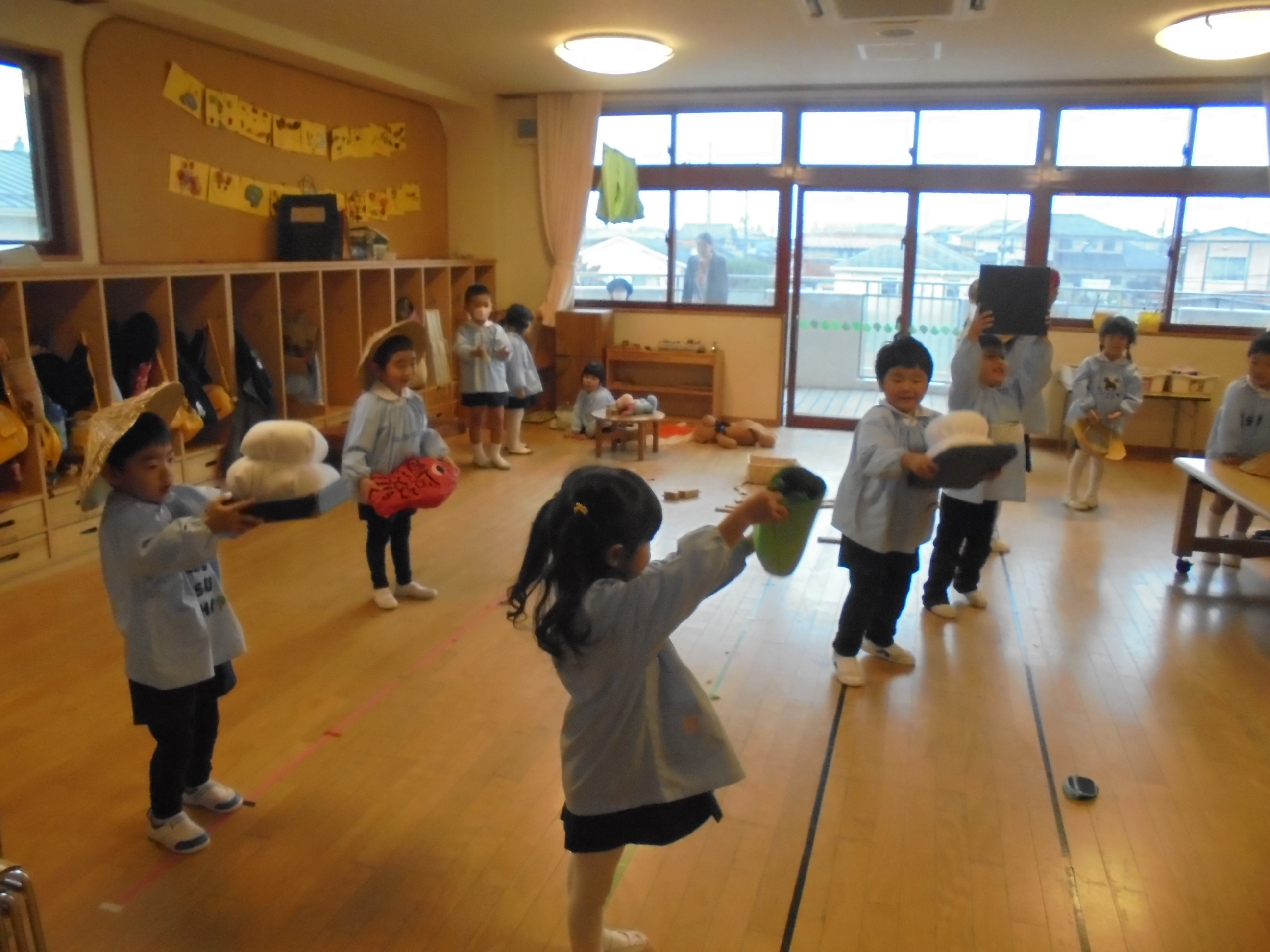 鶴ヶ谷幼稚園のこどもたちは、発表会後も表現あそびを楽しんでいます。年長さんのダンスを一緒に踊ったり、多目的ホールに集まってみんなでおおきなかぶを抜いたりして、異年齢の友達ともかかわりながら発表会ごっこが盛り上がっています。今後もこどもたちの自由な表現でのびのびと遊べるようにしていきます。