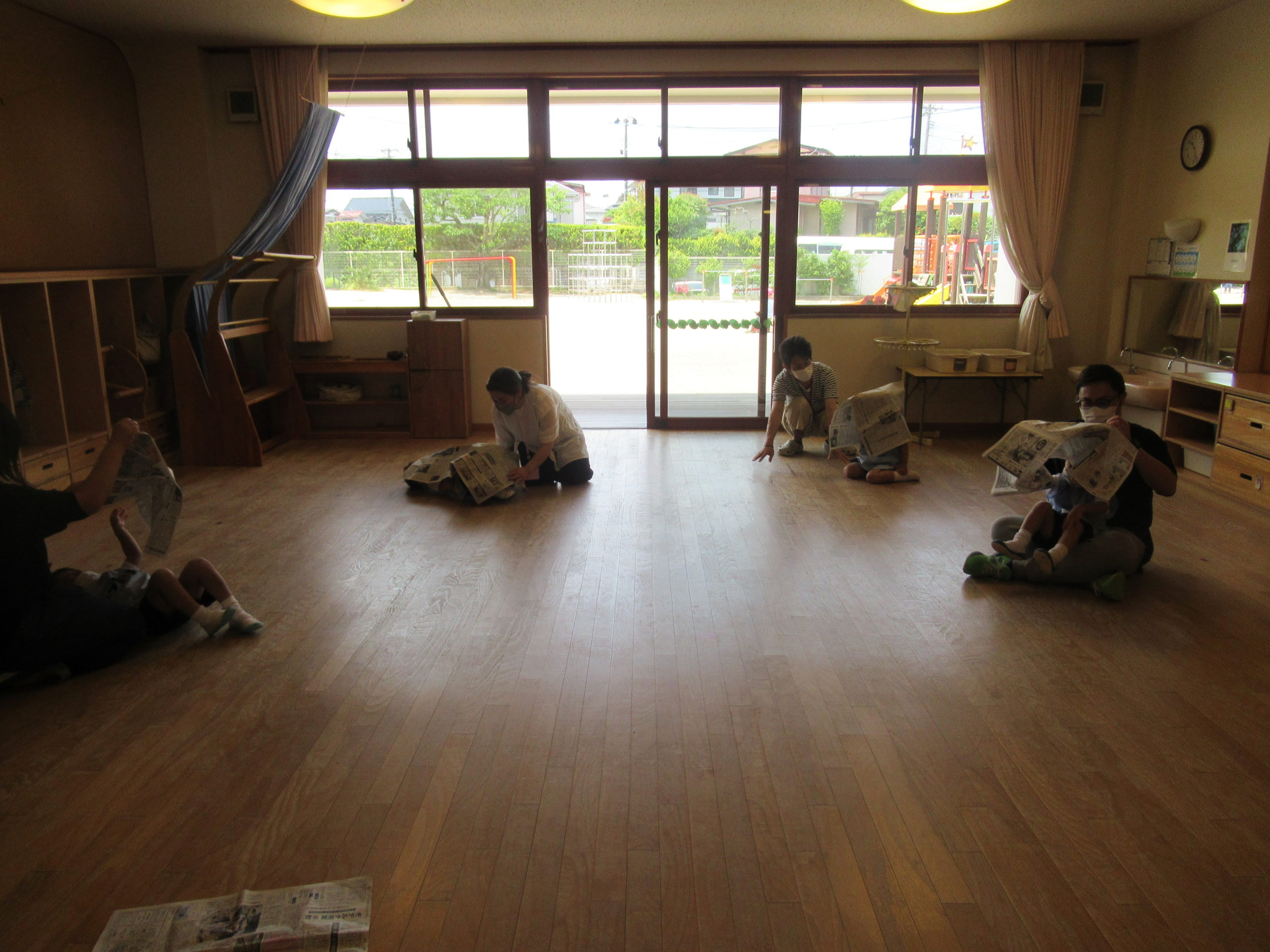 - 親子で新聞紙あそびをしました。
