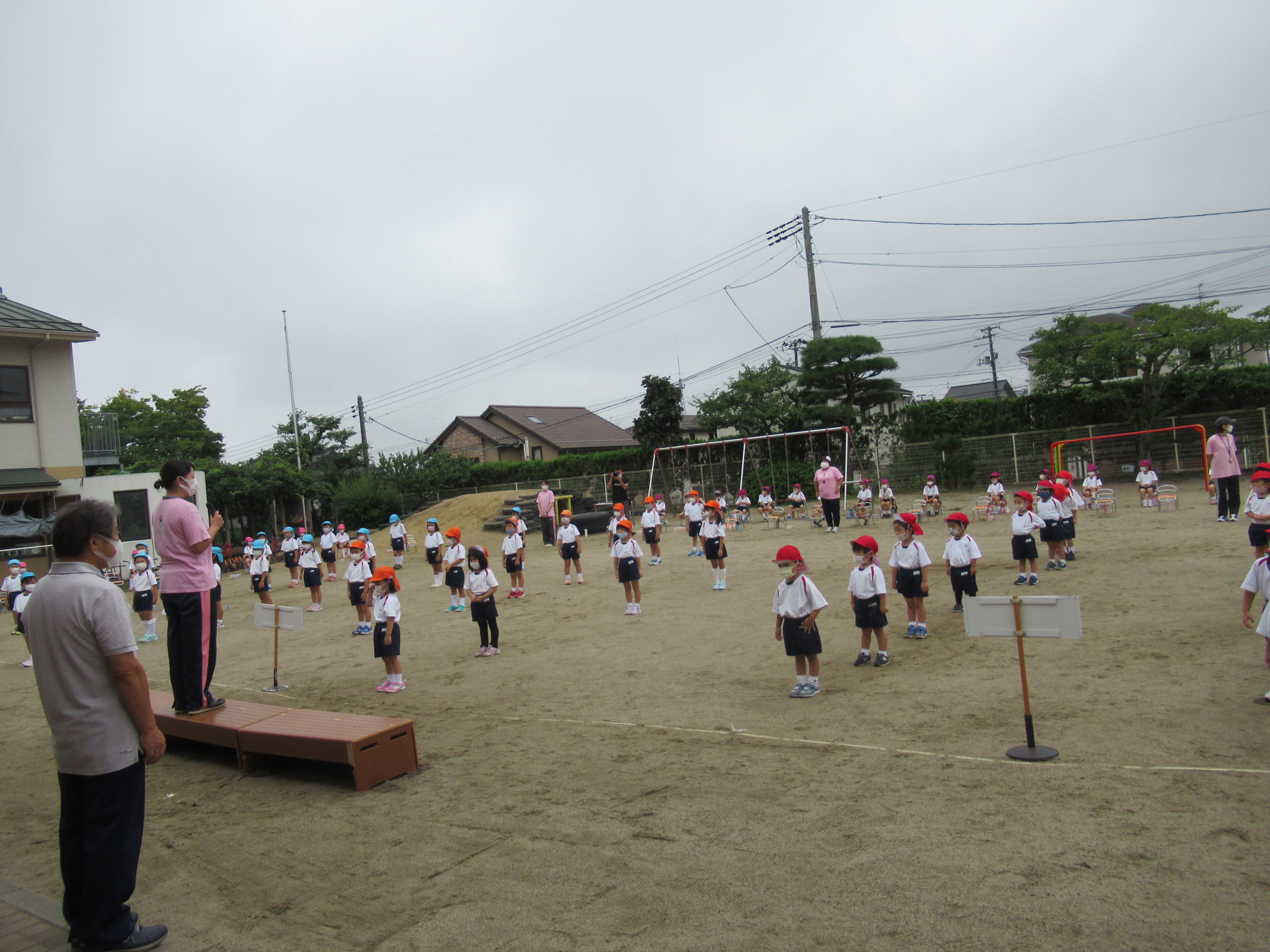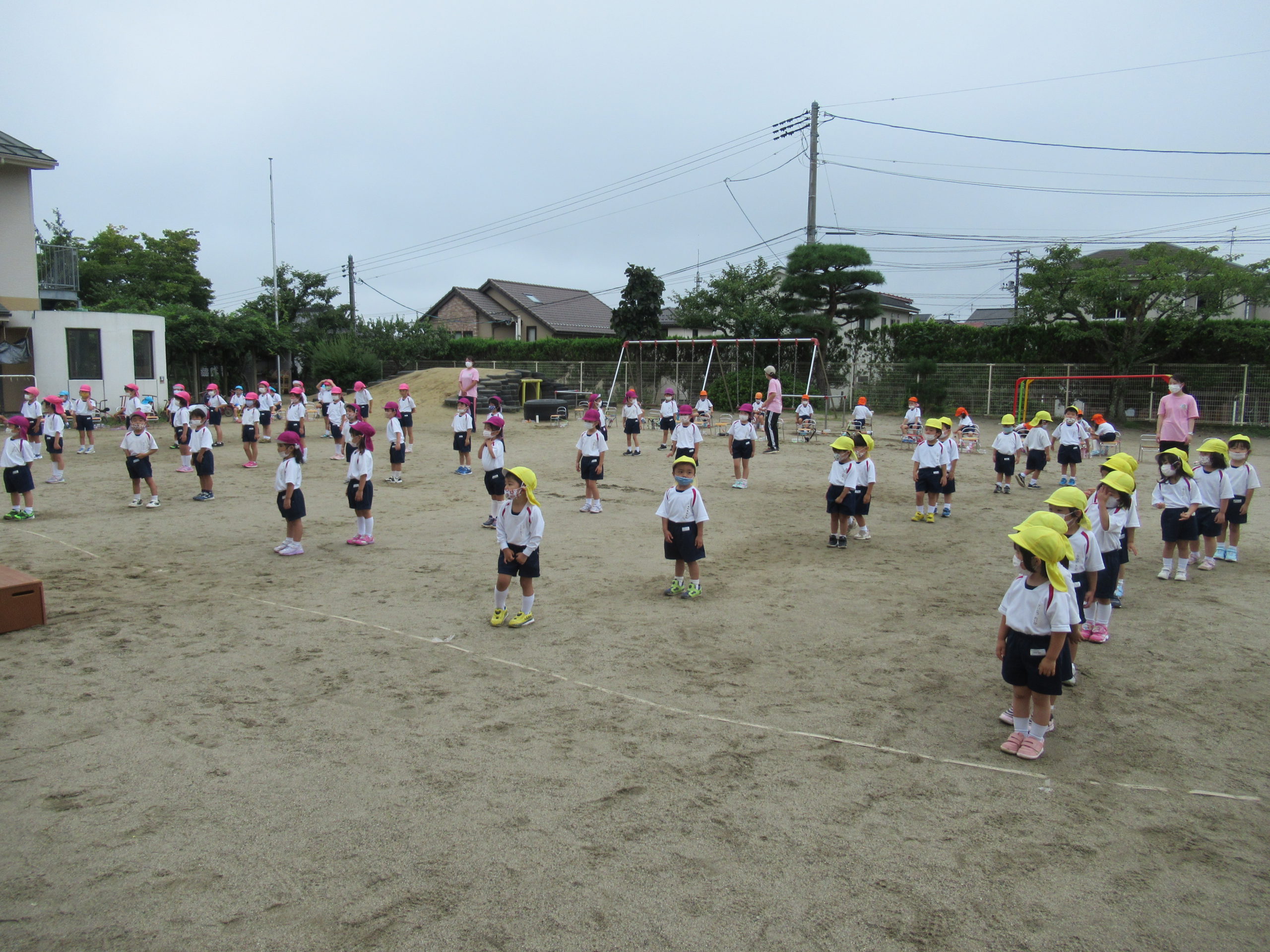 鶴ヶ谷幼稚園でこども運動会を行いました。他のクラスや学年の友達を見て「年長さん、かっこよかったね」「年中さんの並び方が上手だったよ」「年少さんは初めてでドキドキしてたね」などお互いの姿を認め合い、運動会当日への意欲を高めているようでした。運動会に向けて、さらに日本のまつりのテーマに沿いながら、身体を動かす楽しさを味わっていけるように盛り上げていきます。