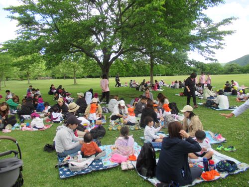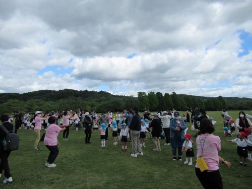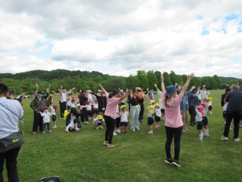 湖畔公園では親子で仲良く『たけのこ体操』をしたり、公園内の広場で遊んだりしました。たくさんの友達や大好きなお家の人と一緒に、楽しく過ごすことができました。