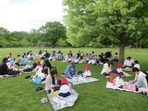 鶴ヶ谷幼稚園の親子遠足で、みちのく杜の湖畔公園に行きました。こどもたちは「あと何回寝たら遠足なの?」「みんなでお出かけするの楽しみだね」「はやく遊びたいなぁ…」と、今日の日を指折り数えて楽しみにしていました。