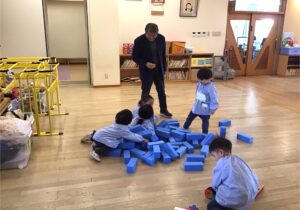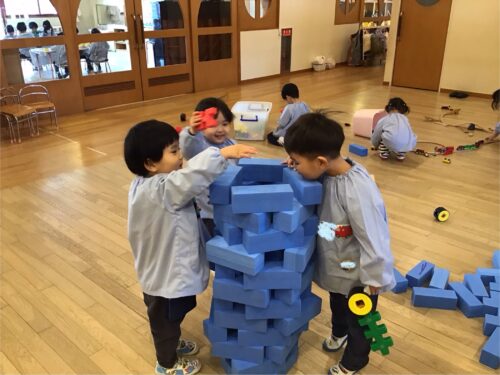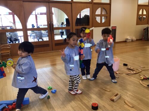 一方で室内では、ブロックや積み木などのあそびを仲良く楽しんでいます♪