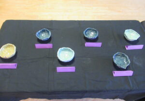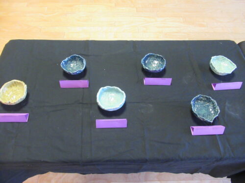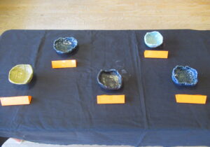 陶芸家の先生に教えていただきながら作成した日から、「いつ出来上がるの?」「早く見たいな」と焼き上がりを楽しみにしていました。「僕のはどこにあるかな?」と作品の中から自分の茶碗を探したり、完成した作品を見て「お家に持って帰りたいな」などと思い思いに話していました。