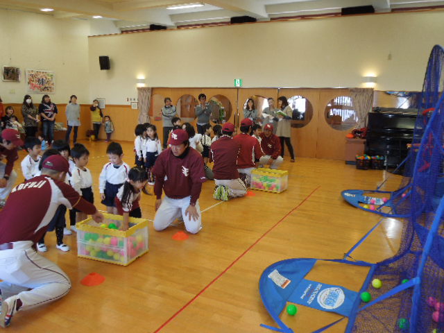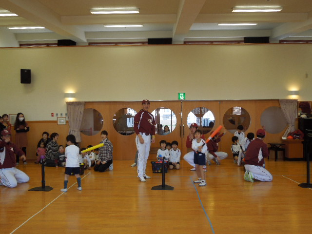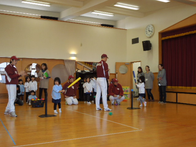 東北楽天ゴールデン・イーグルスのスタッフの方々に、ボールの投げ方や、打ち方を教えていただきましたshine.gif