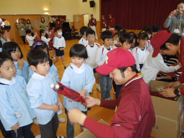 楽天スタッフの方々から、プレゼントのミニバットをいただき、こどもたちは大喜びでしたhappy01.gif