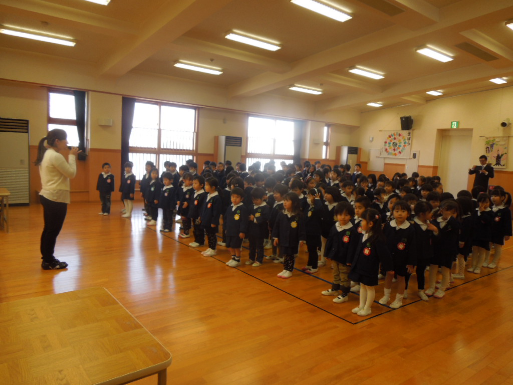 始業式では園長先生から、「3学期は短いので、お友達と仲良くいっぱい遊びましょう」とお話をいただきました。3学期は3か月という短い学期になりますが、一日一日を楽しく過ごし、思い出をたくさん作れるようにしていきます。