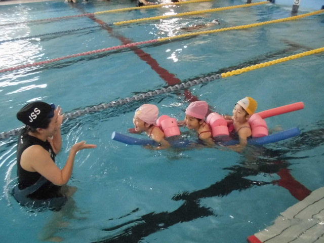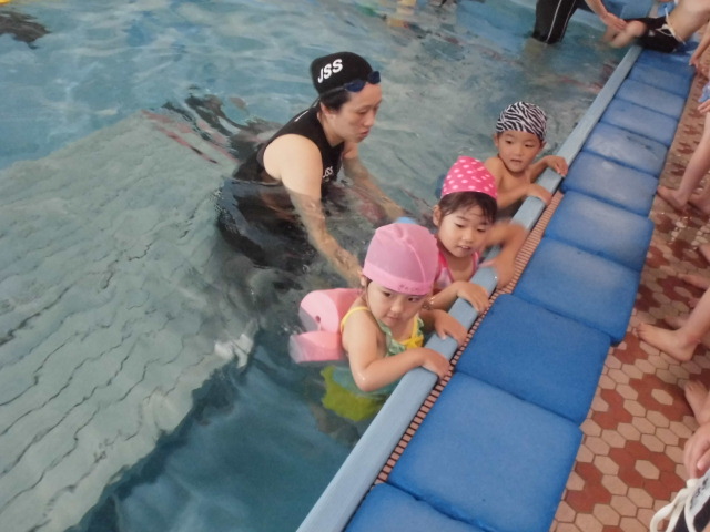 今日はこどもたちが楽しみにしていたJSS南光台スイミングスクールに行って来ました。登園したこどもたちからは「早くプールに行こうよ!」と元気な声が聞こえてきました。プールでは、水に顔をつけたり、ヘルパーをつけて水の中を散歩したりしました。初めは緊張していたこどもたちも、活動が終わると「全部楽しかった!」と嬉しそうに話していました。次回も水に触れる楽しさを味わえるようにしていきます。