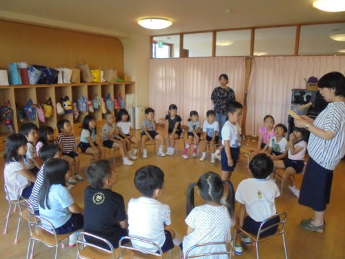 お泊まり会も終わりの時間が近づいてきました。幼稚園に泊まることができた証として、お泊まり証明書を副園長先生からいただきました。証明書をいただいたこどもたちは皆、嬉しそうな表情を浮かべていました。