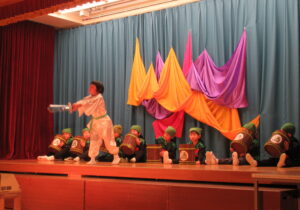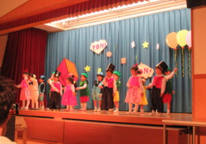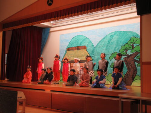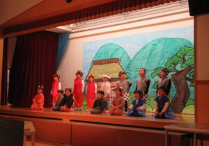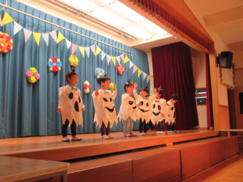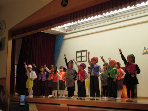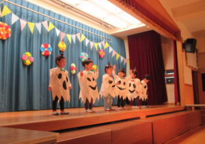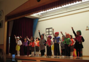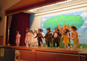 鶴ヶ谷幼稚園で発表会を行いました。こどもたちはどきどき、わくわく…様々な思いを抱えての登園となりました。ステージに立つと一人ひとりが大きな声でせりふを話したり、役になりきったりしてステージで友達と演じることを楽しんでいる様子が見られました。自分の演目が終わると、「緊張しなかった」「今までで一番上手にできた」と喜んで話していました。来週からは、役を交換したり、他のクラスの演目を演じたりしながら事後活動を楽しんでいきます。