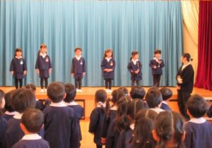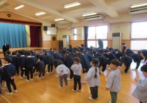 鶴ヶ谷幼稚園で3学期始業式を行いました。久しぶりに登園したこどもたちは、先生や友達と再会したことを喜び、幼稚園にはたくさんの笑顔と元気な声が響いていました。また始業式では、「あけましておめでとうございます」と新年のあいさつをしたり、園長先生のお話を聞いたりしました。3学期も楽しく過ごしていきます。