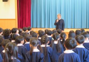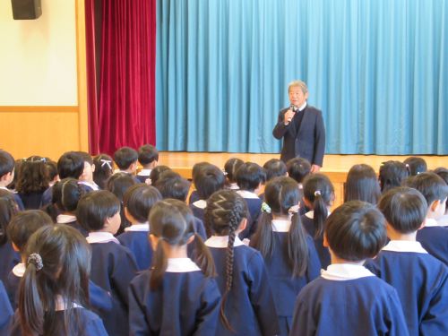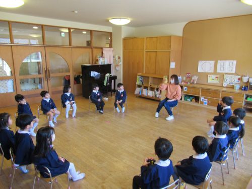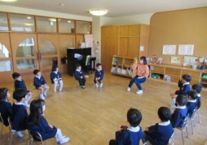 - 園長先生のお話を真剣に聞きます。