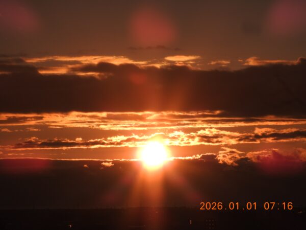 私は、例年のように、近くの丘の上から初日の出(写真をご覧ください)を拝み、新年をスタートしました。
