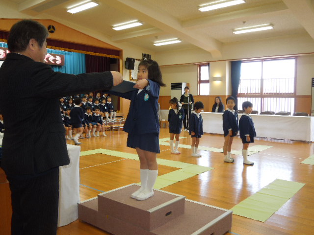 修了証書授与で名前を呼ばれると、はきはきと返事をしたり、お客さんを見てお辞儀をしたりと、自分で考えながら行動していました。
