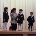 園長先生から、きちんとあいさつをすること、お手伝いをすること、けがなく元気に過ごすことという、お話をいただきました。