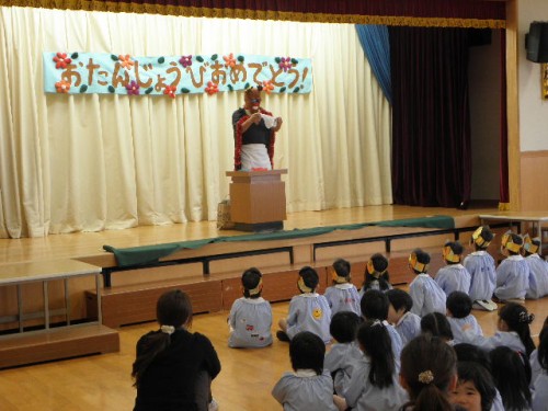 幼稚園では毎月その月に誕生日を迎えるこども達とその保護者をお迎えして誕生会を行っています。今月は12名のこども達が誕生日を迎えます。