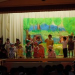 たくさんのお客さんを前にして、ちょっぴり緊張気味な様子もみられましたが、幼稚園のみんなのあたたかい手拍子や拍手を受けて、少ずつ緊張も和らぎ、一人ひとりが役になりきって表現する楽しさを味わっていました