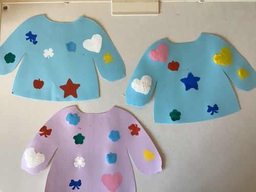 鶴ヶ谷幼稚園の年中組で、2学期の当番表製作をしました。スモック型の画用紙に、スタン…