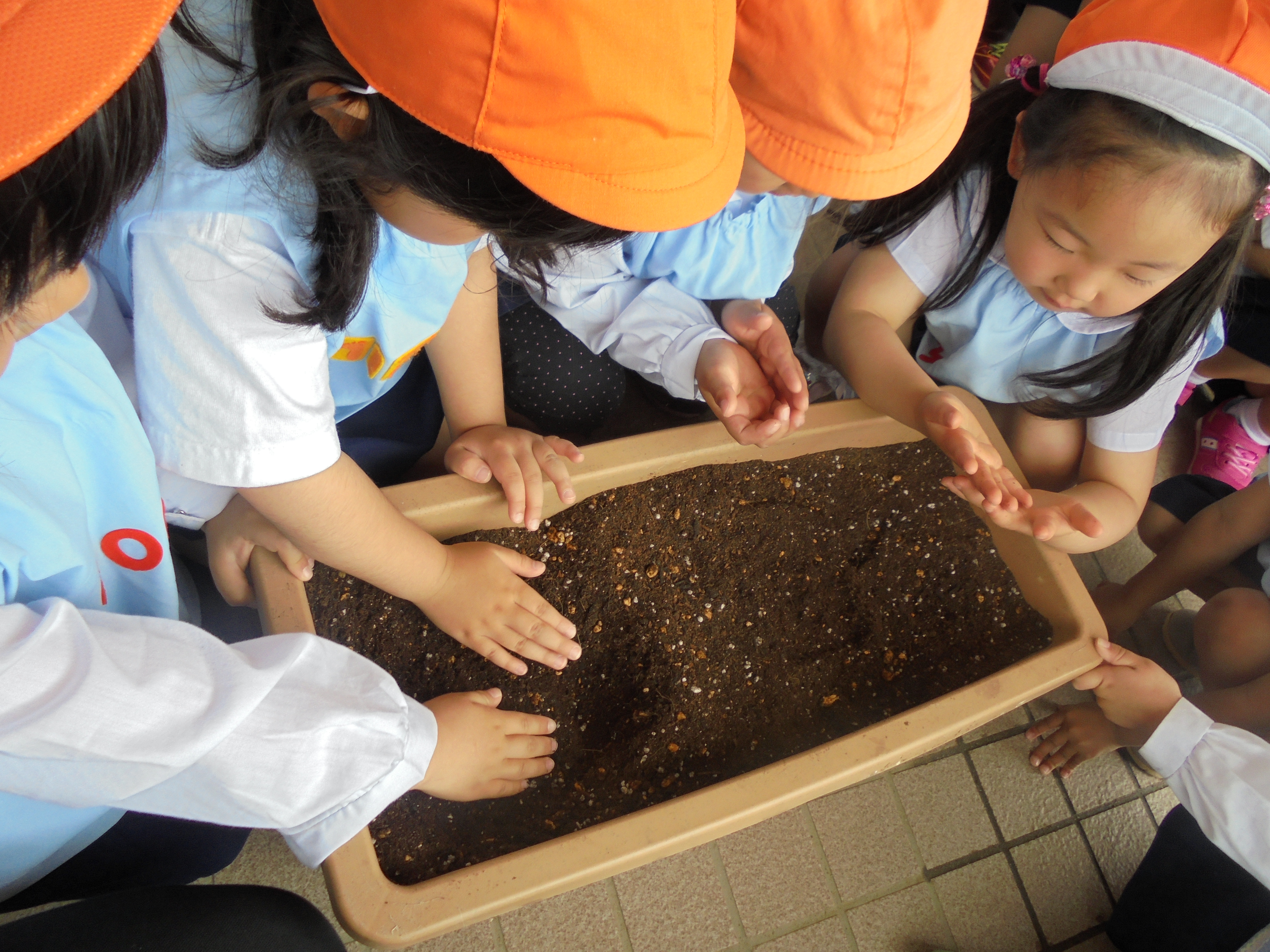 年中組で、幼稚園の畑に枝豆の種を植えました。渡された種を見て、「豆まきの豆みたい!」「これが枝豆になるの?」と気付いたことや不思議に思ったことを話しながら関心を深めていたようです。5月にプランターに植えた綿花も順調に大きくなっています。興味をもって収穫の日を楽しみにしているこどもたちとともに、生長を見守りながら大切に育てていきます。