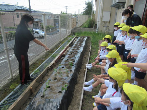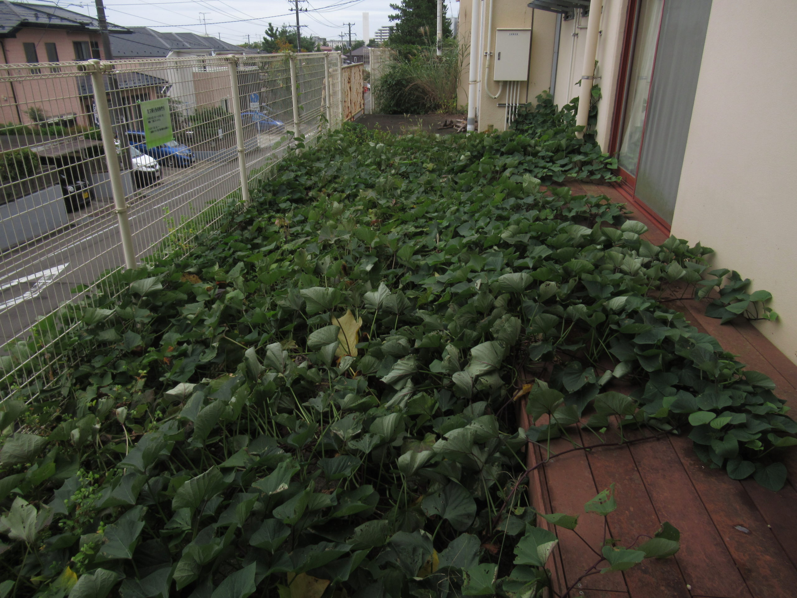 5月に、鶴ケ谷幼稚園の畑に皆で植えたさつまいもの苗が、こんなに生長しました。年少たんぽぽ組の保育室の目の前に畑があるため、今にも保育室に入ってきそうです。「土の中はどうなっているのかな」「大きいさつまいもだといいね」と、こどもたちは収穫の日を楽しみにしています。